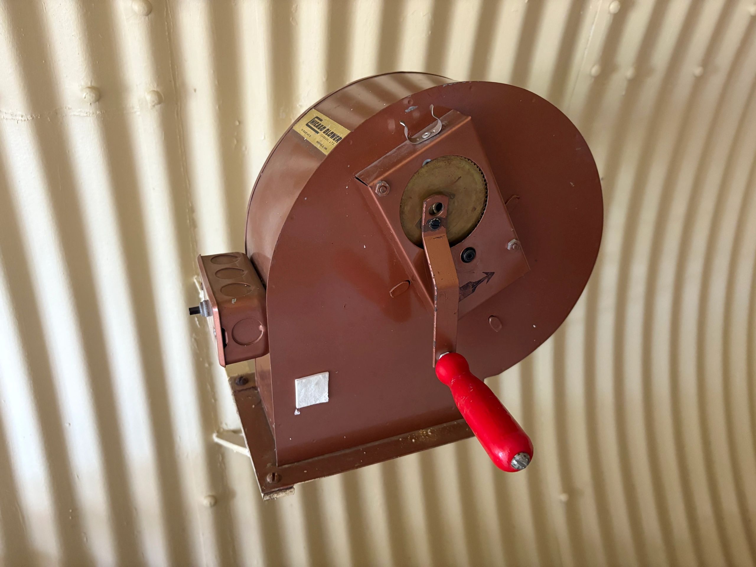 An electrically-driven blower moved air through the ventilation shafts. In case of a power outage, it could be manually operated with a hand crank.