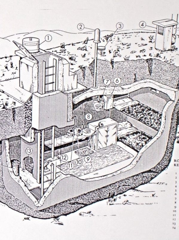 On receiving warning of an incoming nuclear attack, volunteers for these organizations would descend into their FRPs, most of which were equipped to sustain two people for up to two weeks. There, they would use various instruments to measure the location and yield of nuclear detonations as well as outside radiation levels. This data would then be transmitted every hour to Filter Centres, where it would be processed and relayed to the Emergency Government Headquarters (AKA the ‘Diefenbunker’) in Carp, just outside Ottawa. From here, the Canadian Broadcasting Corporation (CBC) would broadcast fallout patterns across the nation, allowing evacuees from the cities to avoid the most heavily contaminated areas.