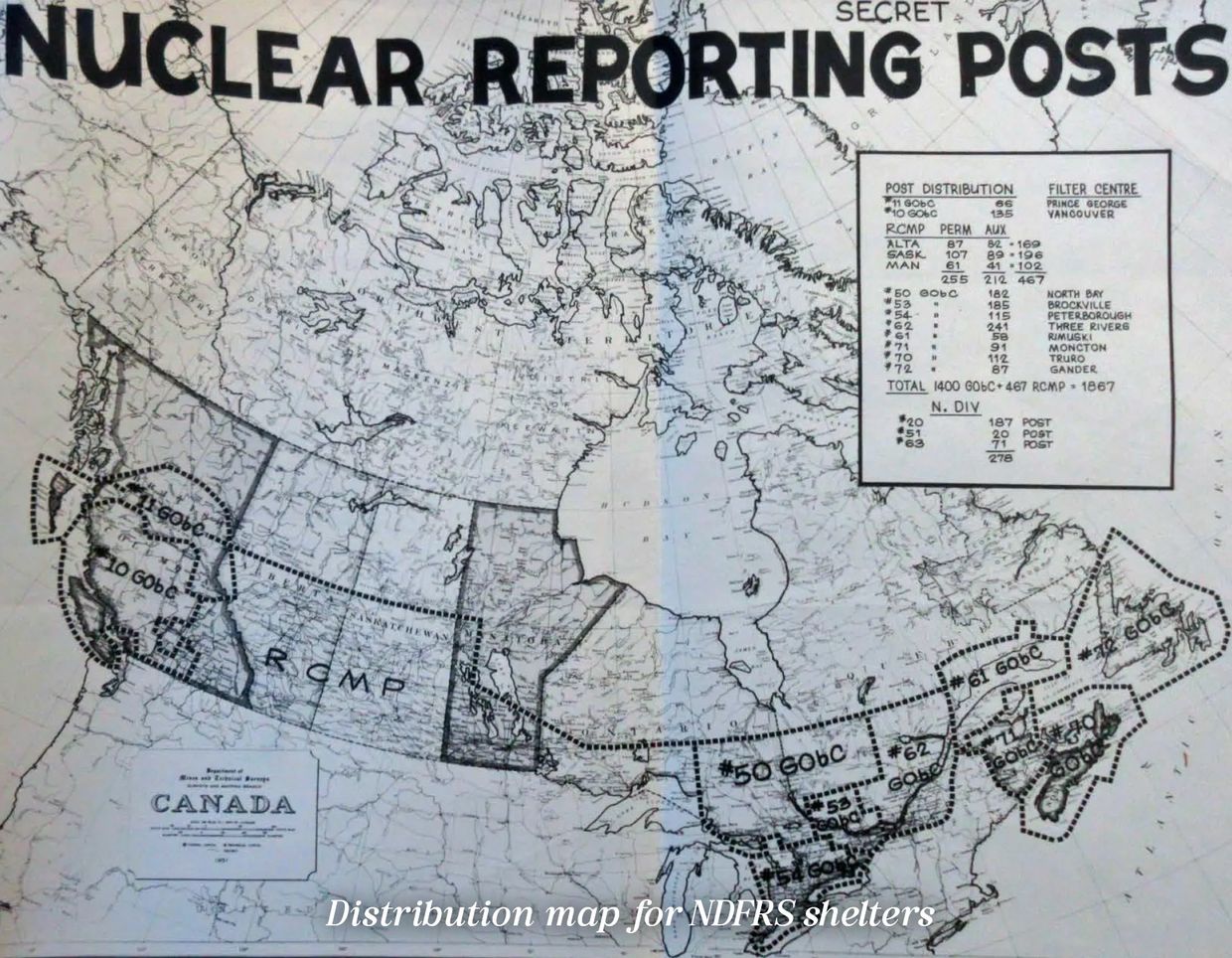 The Nuclear Detonation and Fallout Reporting System (NDFRS) was a network of small fallout shelters called Fallout Reporting Posts (FRPs) built across Canada in the early 1960s. The systems function was not to shelter Canadian civilians, but to track the drift of radioactive fallout in the wake of a nuclear attack. The design of the system reflected rapid changes in the Cold War weapons technology and strategy - changes Canada struggled to keep up with.